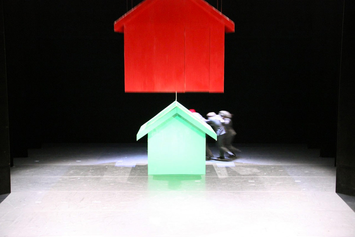 «Isabel Osthues inszeniert am Luzerner Theater die Stückvorlage, die ihre Umsetzung und Konkretisierung offen lässt, als fröhlich buntes Spiel, das nostalgisch an die grossen Fernsehshows der 1960er- und 70er-Jahre erinnert. Danke schön dröhnt im tranigen Unterhaltungsorchester-Sound aus den Lautsprechern, ein kleines grünes Haus senkt sich vom Bühnenhimmel herab, ein grösseres rotes stülpt sich darüber. Samuel Zumbühl tritt auf Rollschuhen und im gelben Tütü als Joker aus dem Batman-Film «Dark Knight» auf und krächzt mit dessen hämischer Stimme. (...)»
